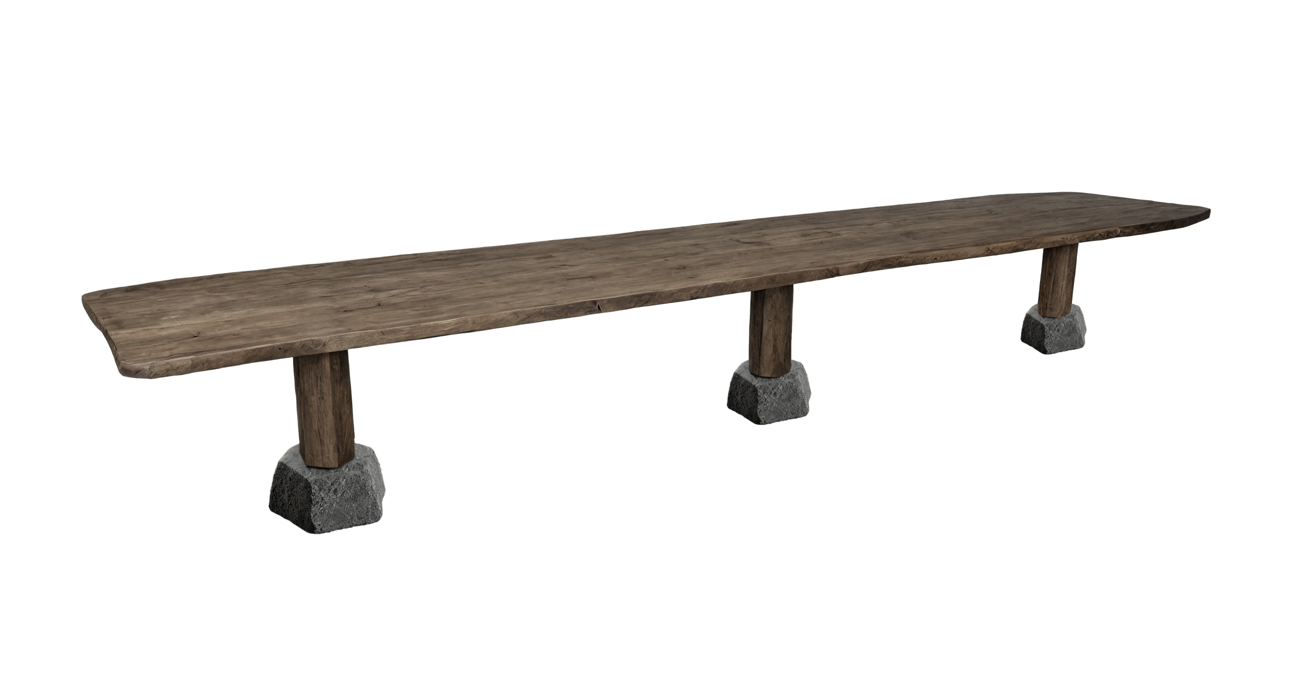 Mila was born out of peace. Inspired by the sacred silence of Hikawa Jinja in Omiya, Japan, this table places character at the center—literally. The central beam, made from specially selected reclaimed wood, tells a story of time and texture. Beneath it lies our exclusive “Ocean Stone” base, hand-chiseled and entirely unique to each piece. Mila is hospitality-ready: plenty of legroom, clever modularity, and a finish that feels handcrafted for daily beauty.